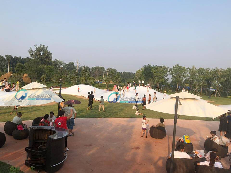 1.可靠、整潔,適合親子互動,兒童群體玩耍。 2.可整體場景定制,組合各種形式,簡約不簡單。 3.外膜材質選用耐磨、抗陽光、自潔的膜材,保證外膜長期被人踩踏、暴曬、彈跳后,清洗后依然清潔。 4.產品可長久性固定在地面之上,拆卸維修方便。