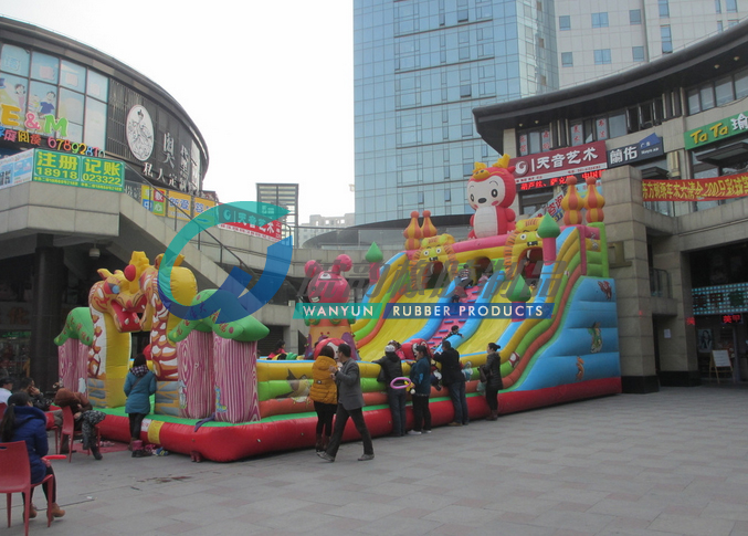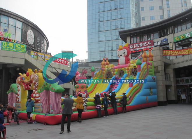 特點:充氣滑梯造型變化多端、游樂趣味濃烈、驚險刺激而不失安全,深受兒童喜愛。規(guī)格可大可小,具有安全、方便、快捷等突出優(yōu)點。每次充氣僅需十分鐘,也可隨時流動作業(yè)經(jīng)營。