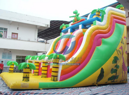 特點:充氣滑梯造型變化多端、游樂趣味濃烈、驚險刺激而不失安全,深受兒童喜愛。規格可大可小,具有安全、方便、快捷等突出優點。每次充氣僅需十分鐘,也可隨時流動作業經營。