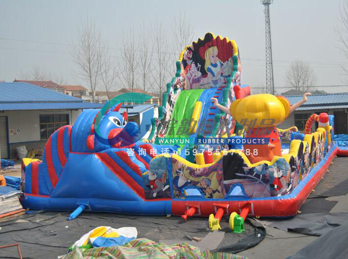 廣州皖韻是基于孩子們喜愛的動畫人物所設計的,產(chǎn)品中同時還融和快樂、色彩等成為孩子和家庭心目中樂觀元素,令廣州皖韻充氣滑梯更加的栩栩如生。再加以其他造型的點綴,迎合了當前最為流行的風格,讓小朋友喜歡它的同時更好的融入和睦而又精彩的童話世界。并讓家長與孩子真正互動起來,更增加親子關系。結(jié)構(gòu)上采用前面造型-后面滑梯相配合的設計,使不同年齡段的兒童能夠充分享受游玩的樂趣。