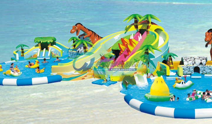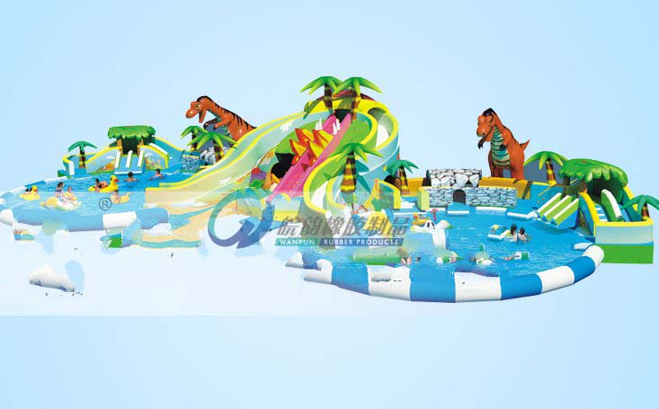 侏羅紀公園主題滑梯以恐龍在林中嬉戲為主題,左右兩側連接2個圓形充氣水池,中間連接一個方形水池,給游客提供了大面積的戲水空間,各個水池之間均有滑梯連接,多個不同的滑梯通道增加了設備的趣味性,該產品配備多個不同高度的滑梯,滿足了不同游玩人群的需求。恐龍造型異常逼真,讓游玩的人們有種身臨其境的感覺。